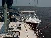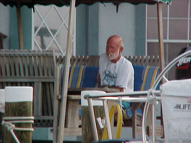 I put 50 gallons of fuel in the starboard tank, bled the air from the system, yet again and were off. The crew abandoned the boat and found a source of beer. We took on more beer. We made it as far as Whitley Marine in Cocoa. Picture to the right is of Scott, the dock master. He lives on his 41' Morgan O/I. You see him here in his "office" which is a glider sitting next to the dock. We got in early and had time to shower at the marina. The showers are part of a doctor's office located in a building adjacent to the marina. Stan washed clothes for us after dinner.
