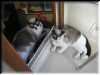 hidey hole in the V berth as soon as the engine starts and doesn't