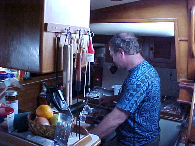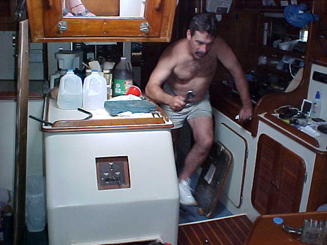 Stan didn't like the fix he made to the pulley on the raw water pump, so he went to a convenient hardware store and got a new nut and some washers to hold the pulley in place. We were now back on the road, so to speak.